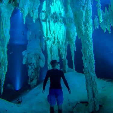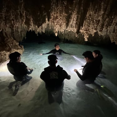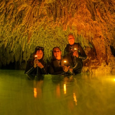 Adéntrate con tu pareja en la selva virgen y exploren tres cenotes tipo cueva escondidos entre raíces y formaciones milenarias. Naden bajo estalactitas, descubran pasadizos de agua cristalina y vivan uno de los snorkels más impresionantes de México
