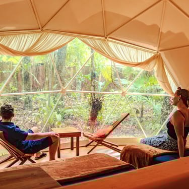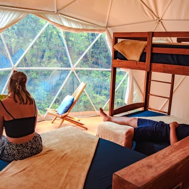 Después del tour, relájense en un domo con jacuzzi privado y, en la segunda noche, disfrutntos deuna fogata bajo las estrellas.