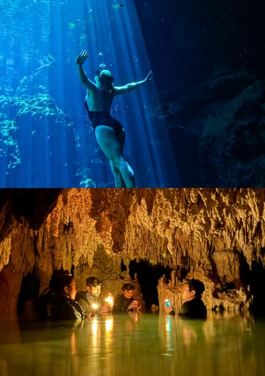 Embárcate en una aventura entre la selva y las profundidades de la tierra mientras exploras tres cenotes tipo cuevas llenas de magia y misterio. Camina por senderos rodeados de naturaleza virgen y descubre aguas cristalinas donde podrás realizar snorkel en uno de los recorridos más impresionantes de México, con guía local, equipo completo de seguridad, lámpara acuática y comida casera incluida.